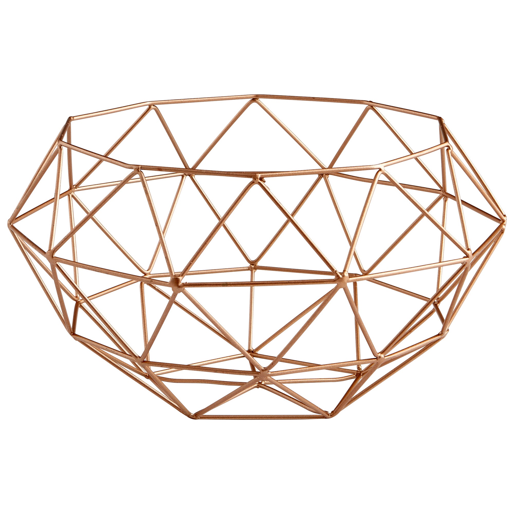 Beaming copper in an open weave net is a gracefully shaped small container. Perched on your kitchen countertop or in your leaving room for a fun creative display.