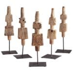 The rustic totem sculpture brings an artistry to a mantelpiece or side table. Handcrafted in wood with iron bases, each totem boasts a charming rustic finish. Multiples are shown as the product may vary slightly. Sold individually.