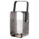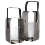 Adorned with an acid-etched exterior, the Samara Lanterns boast a captivating geometric pattern and antiqued nickel finish that dances gracefully in the glow of candlelight. The smooth interior ensures a seamless diffusion of light, casting a gentle, inviting ambiance. Each lantern is adorned with a delicate ring on the base, cradling a clear glass cylinder. With an adjustable handle, these lanterns offer versatility in placement, whether suspended from a hook or nestled atop a tabletop. Available in two sizes.