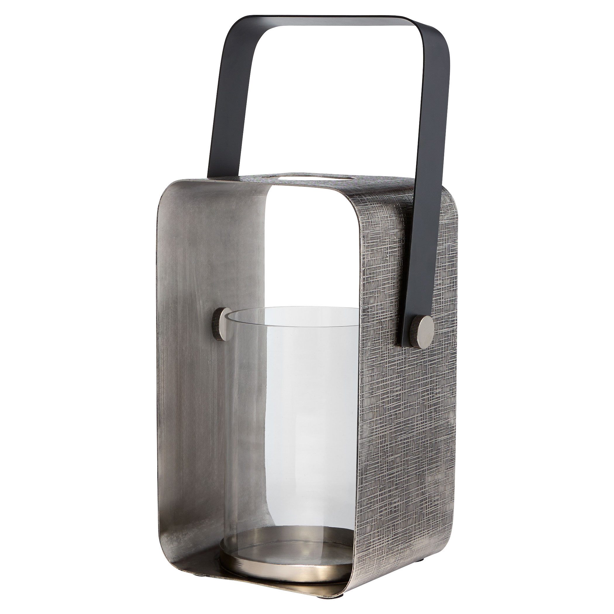 • Acid-Etched Exterior |Ring On Base Holds Clear Glass Cylinder | Adjustable Handle