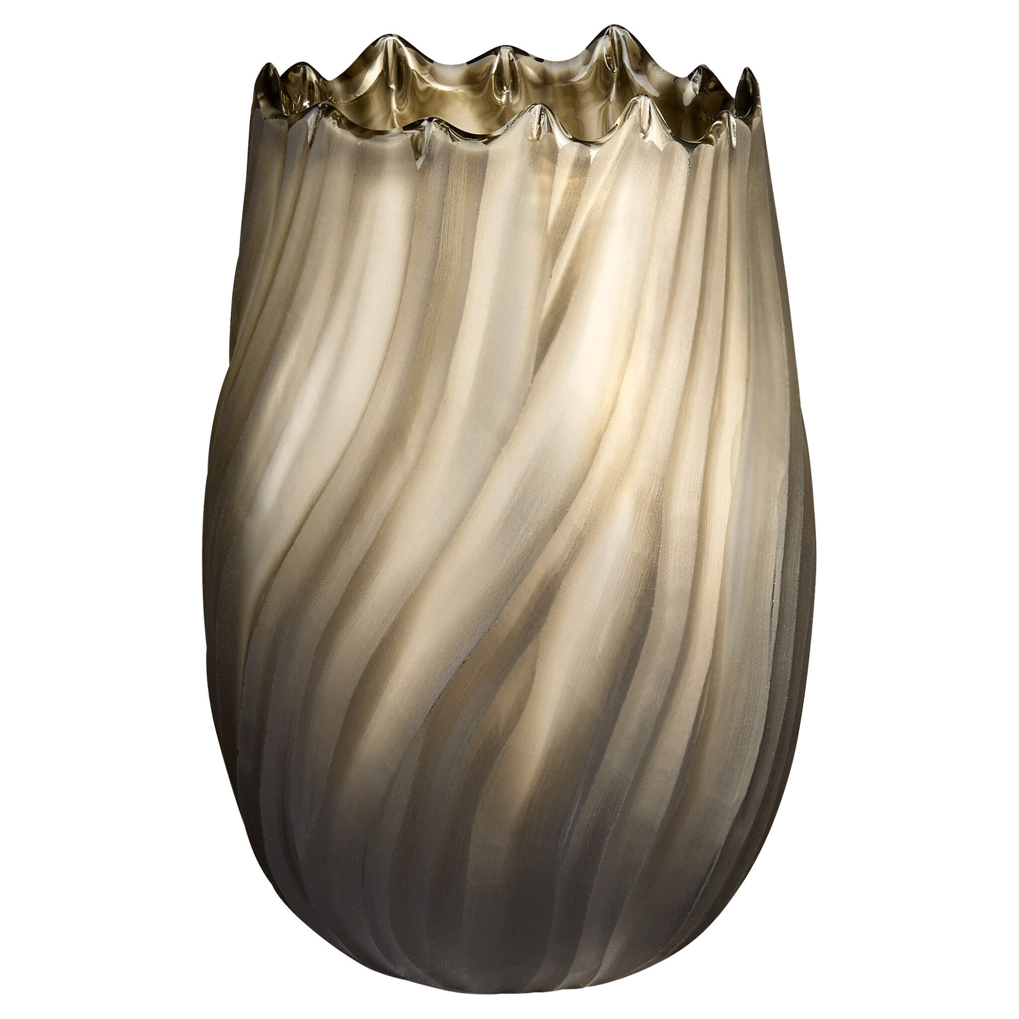 The Seagrass Vase, crafted from art glass with an elegant olive finish, features intricate hand-etched detailing for a unique, textured look. This versatile piece is available in three sizes and adds natural, earthy charm to any space, whether displayed individually or as a grouped set.