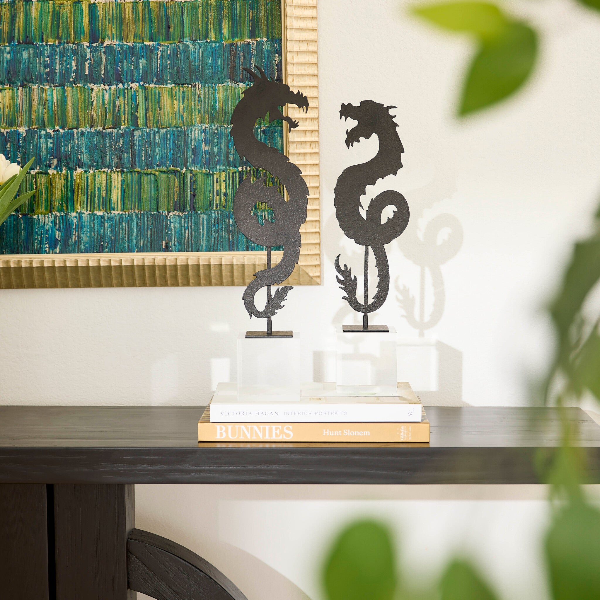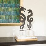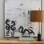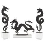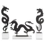 The gold-finished Haku and black-finished Shenron Dragon Sculpture celebrate the rich tradition of Chinoiserie dragons while infusing a modern twist. Crafted from iron sheet, these sculpture symbolize strength, power, and good fortune. The modern twist is seen in their adaptability: they can be used in either a left or right-facing orientation. This feature allows placement customization, adding versatility and a sense of freedom. The year 2024, being the Year of the Dragon, enhances the cultural significance of the Haku and Shenron Dragon Sculpture, aligning the collection with the profound and auspicious symbolism of the dragon in the Chinese zodiac.