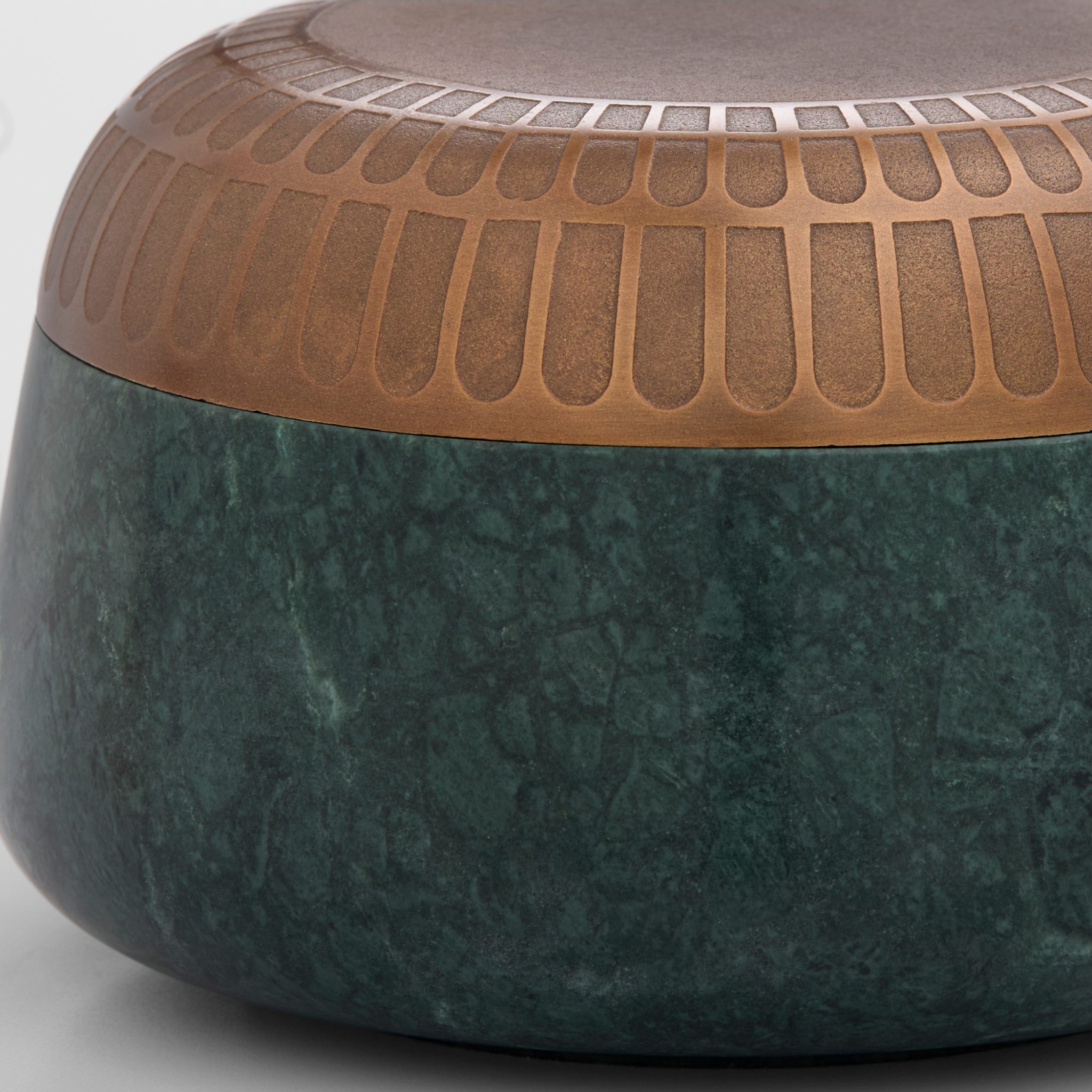 The Sofia Boxes feature a rich dark green marble base with an antique brass lid, blending elegance with functionality. Available in two sizes, they can be paired together for a layered look or styled separately. Perfect for adding a sophisticated touch to any space.