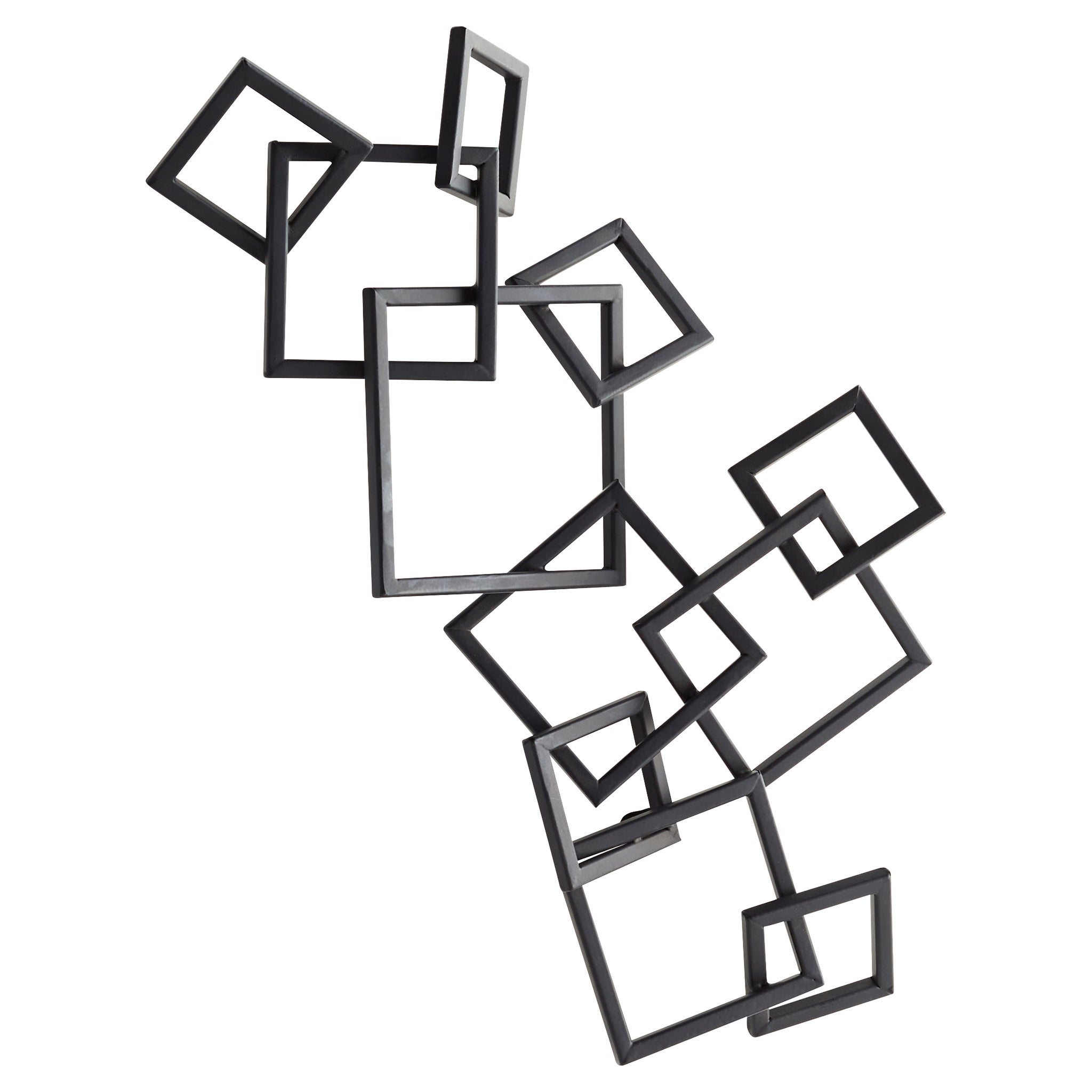This wall decor features individual metallic squares that are fashioned together. The size of the square vary on their positions and are angled outward to give this wall art a 3-D effect. This sculpture will enhance the contemporary look of your space. The abstract design will provide visual interest in any commercial or home application.