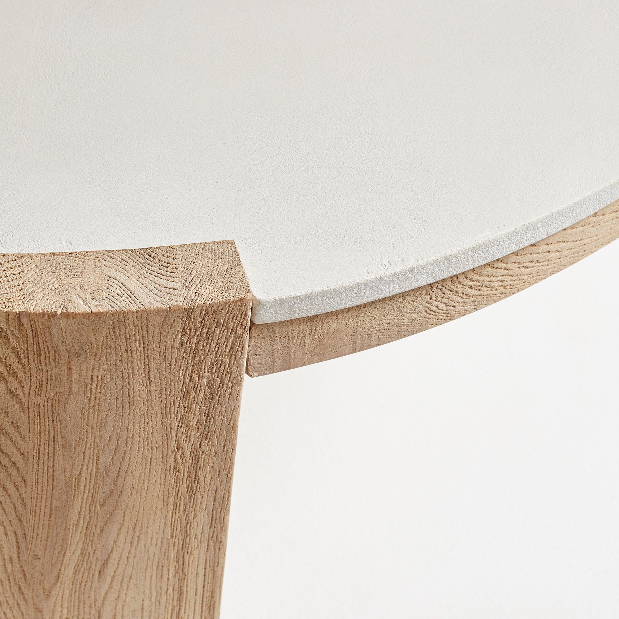 Complete your living room look with the head turning Spezza coffee table. This anchor piece offers enough space to display accents and serve your guests. Crafted from solid oak and concrete, this furnishing couples a solid circular top with slotted straight wooden legs, for a hint of mid-century appeal. The two toned design make it distinctive, yet understated, perfect for any modern, nostalgic, or transitional ensembles. It`s low profile makes it ideal for more compact seating arrangements.