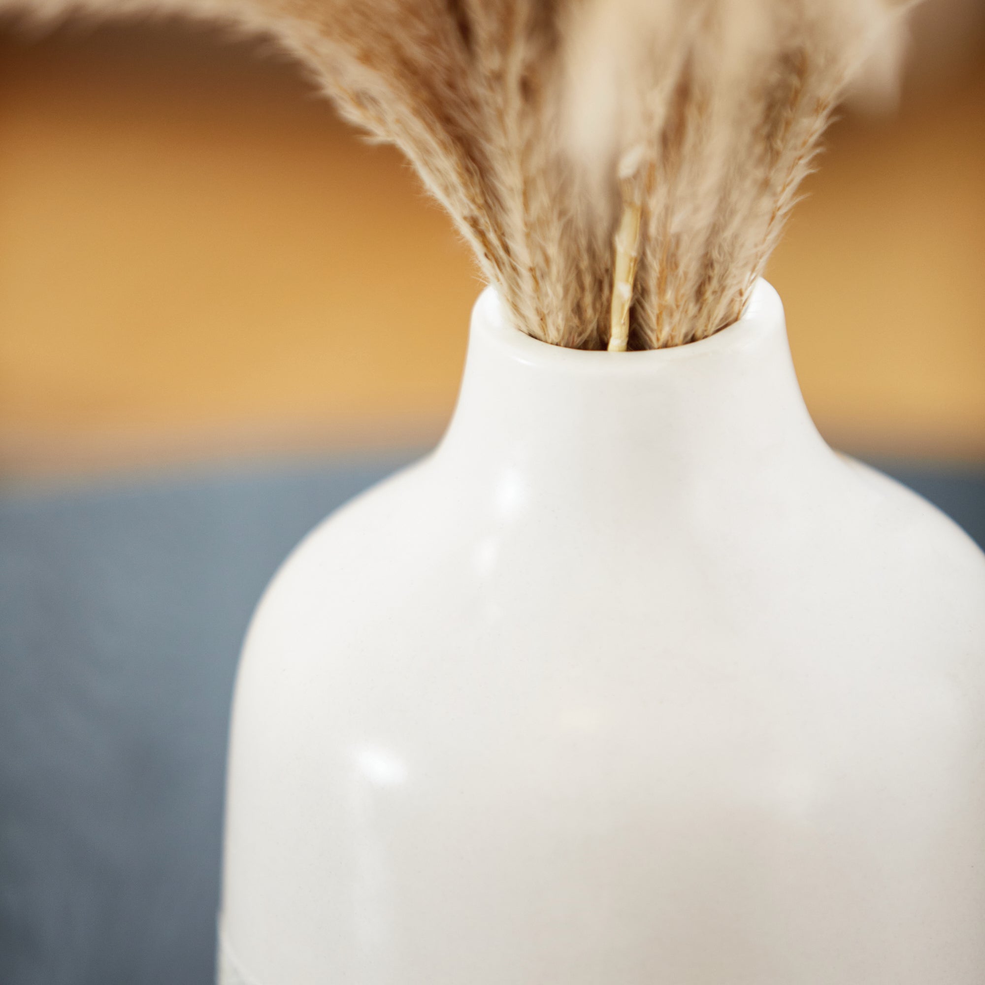 This elegant vase has two-tones and two finishes. Its body is made up of a grainy white charcoal texture. It is a great choice for modern and natural aesthetics. With three available sizes, this accent is perfect for your fire mantle plans, coffee table styling, or entryway console decor.