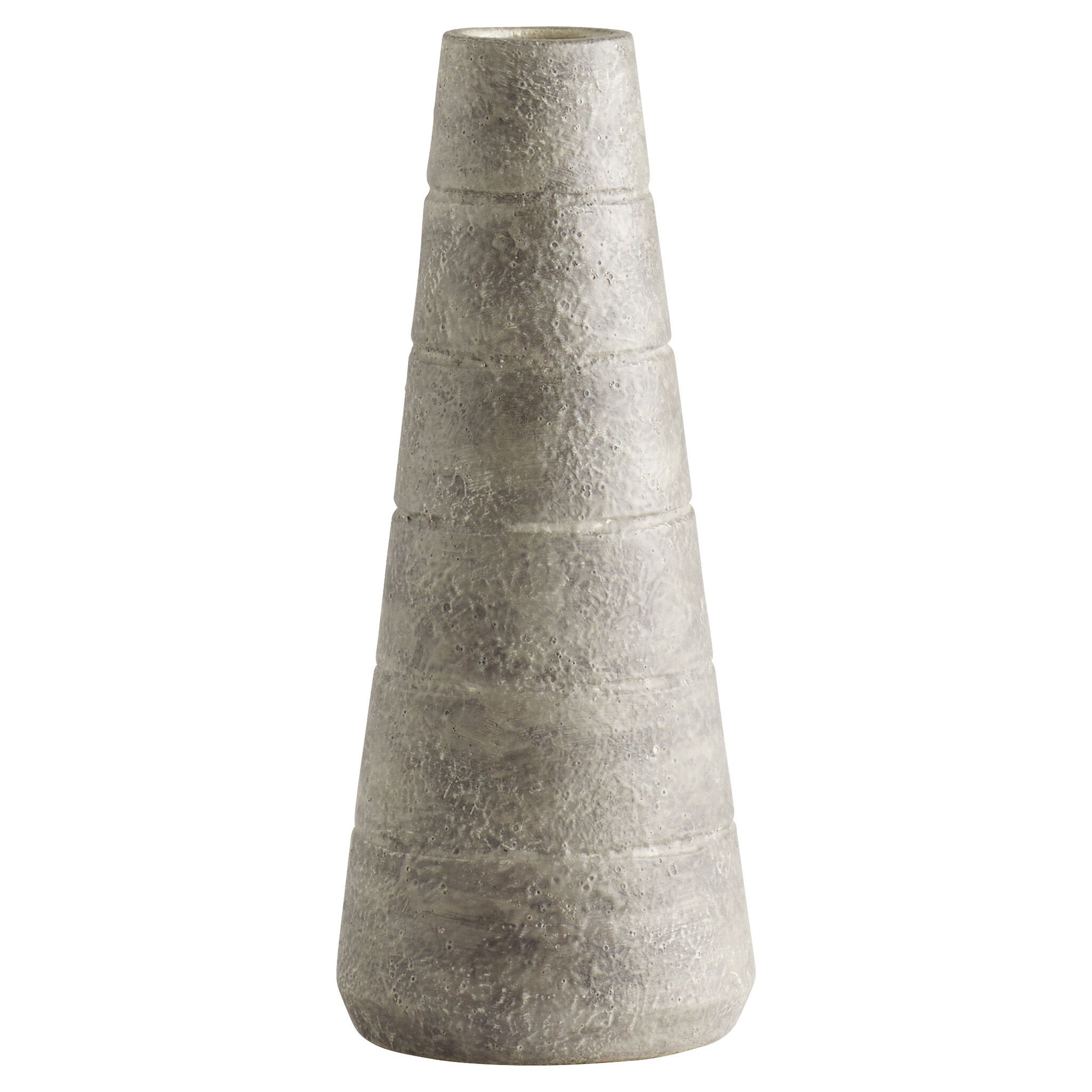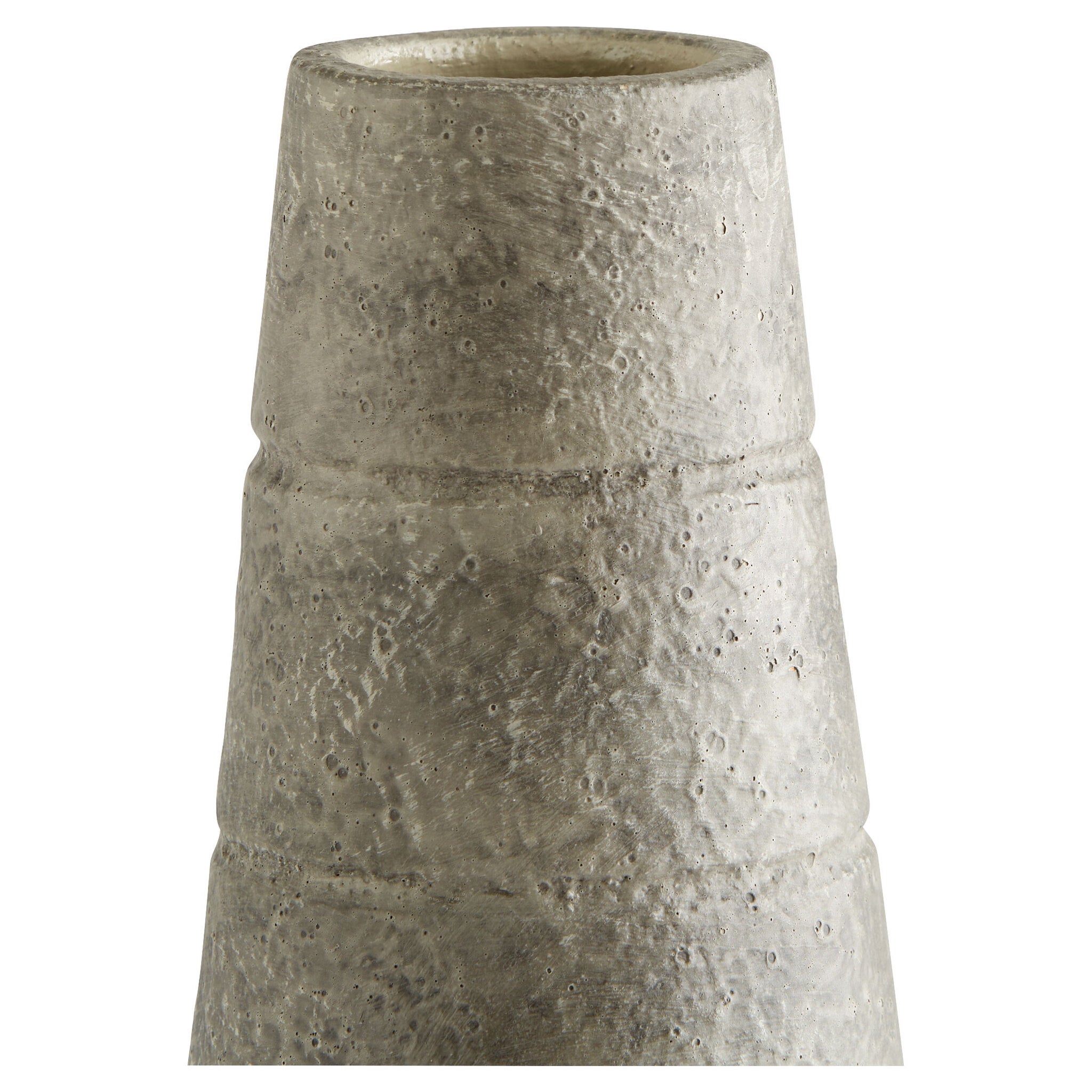 Thera, the ancient name for the volcanic island of Santorini, Greece, was influential in the design of this collection of cone-shaped earthenware vases. A medium-width base tapers to a slender rim with horizontal lines etched along the sides. A textured finish is applied, giving the series a concrete-like exterior. Display together or individually in any poolside covered patio design, kitchen, entryway or washroom. Available in two sizes and colorways. Not water-tight.