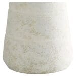 Thera, the ancient name for the volcanic island of Santorini, Greece, was influential in the design of this collection of cone-shaped earthenware vases. A medium-width base tapers to a slender rim with horizontal lines etched along the sides. A textured finish is applied, giving the series a concrete-like exterior. Display together or individually in any poolside covered patio design, kitchen, entryway or washroom. Available in two sizes and colorways. Not water-tight.