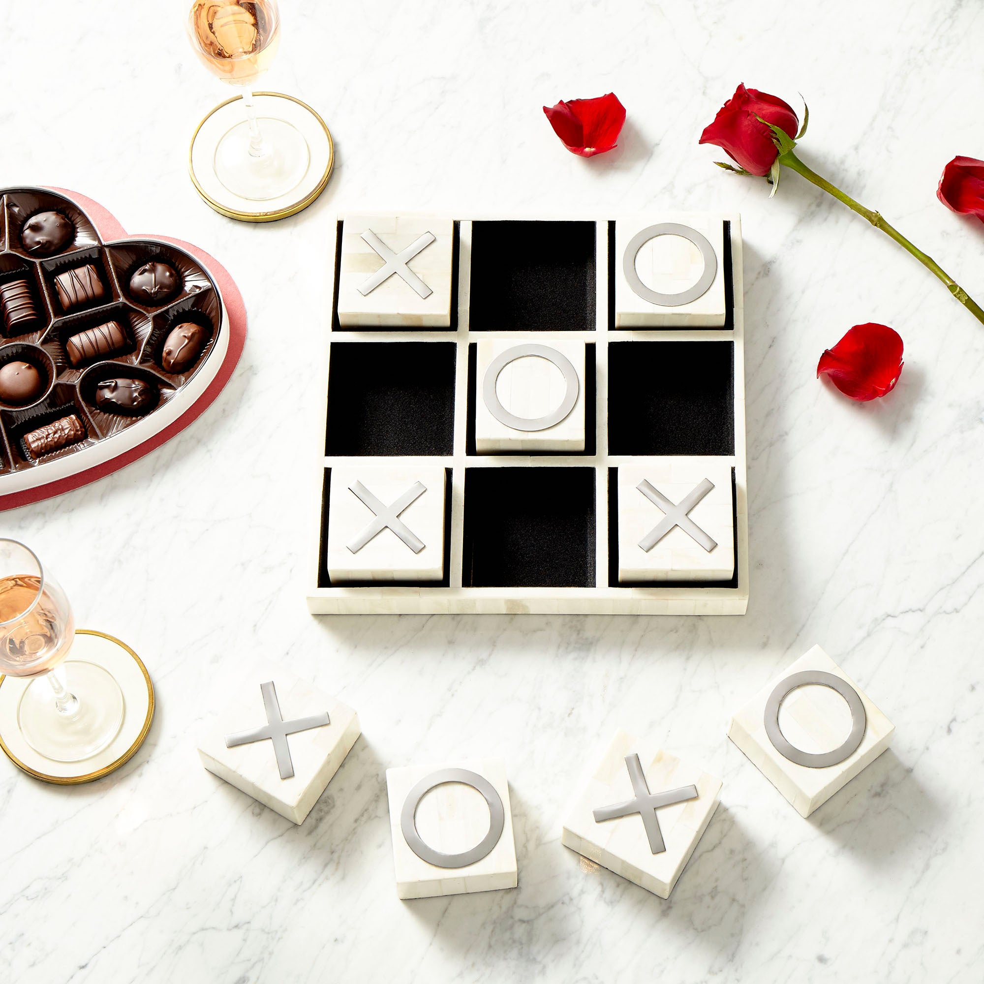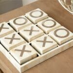 Turn a classic children`s game into a bold art piece with this tic-tac-toe bone and wood sculpture piece. Bring a dose of character and entertain friends and family in the same moment with this fully functional game of X`s and O`s.