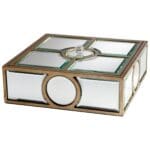 Enhance the stylishness of any nightstand with this chic, clear and gold container. Mirrored glass cut in modern geometric shapes add radiant depth.