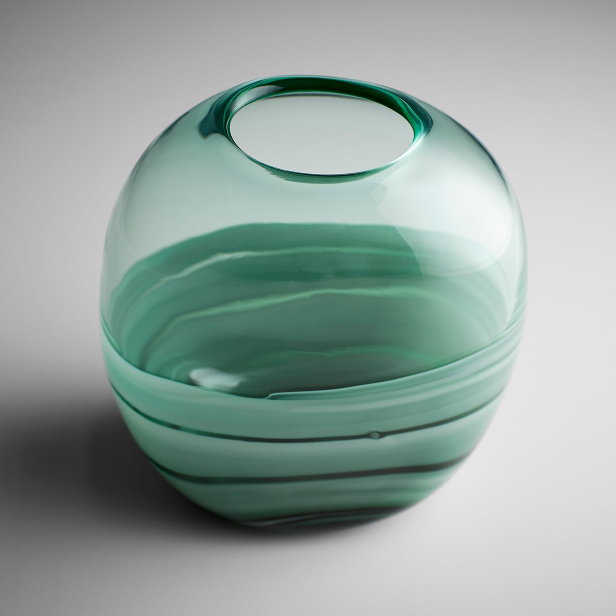 Add an abstract design to your tabletop ensemble with the Torrent vase. Available in three different size options, these subdued white and green swirled accents, feature a translucent surface from top to bottom. This contemporary vessels is ideal for your seasonal floral arrangements. Constructed from 100% recycled glass, this vessel is suitable for any style design: modern, traditional, or transitional.