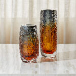 The Tramonto Vase, handblown from cased art glass, features a stunning smoke and amber finish that adds warmth and sophistication to any room. Its unique craftsmanship and rich tones make it a standout piece, perfect for both modern and classic decor.