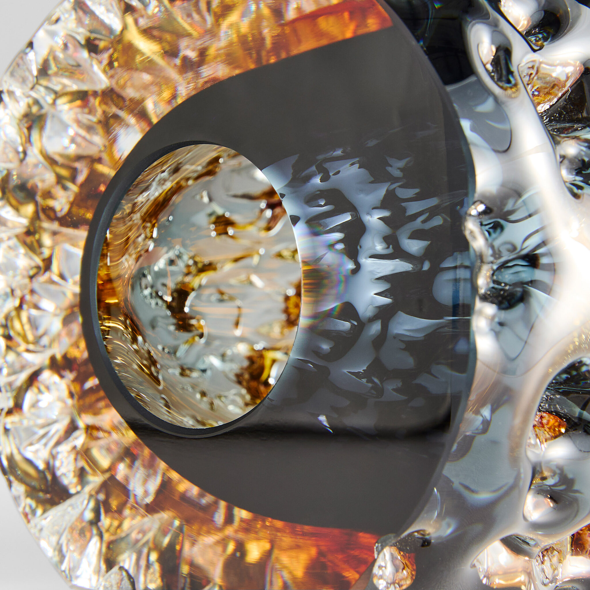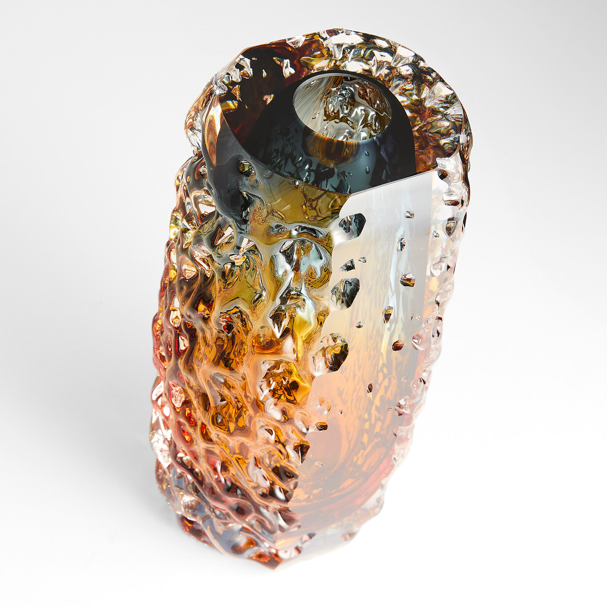 The Tramonto Vase, handblown from cased art glass, features a stunning smoke and amber finish that adds warmth and sophistication to any room. Its unique craftsmanship and rich tones make it a standout piece, perfect for both modern and classic decor.