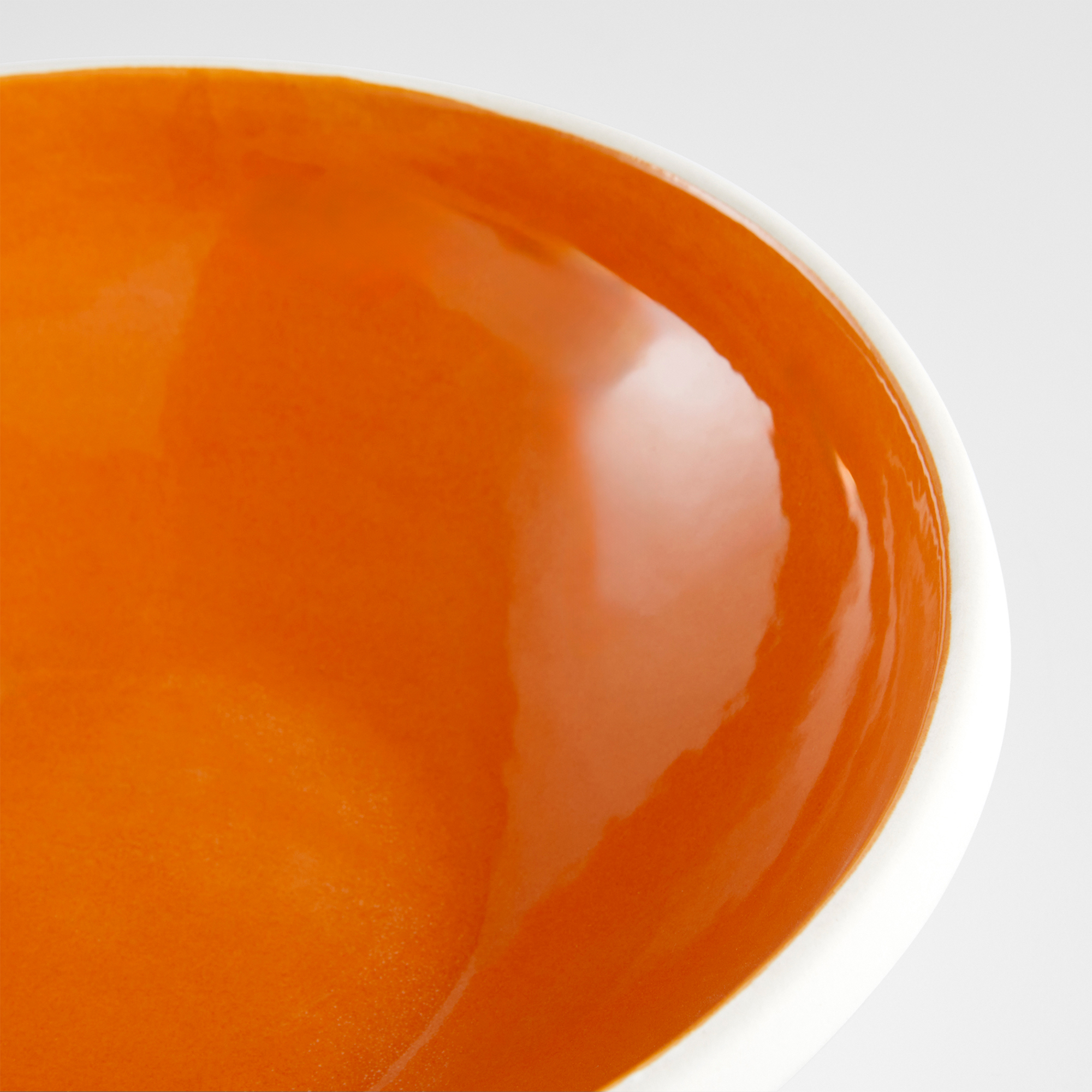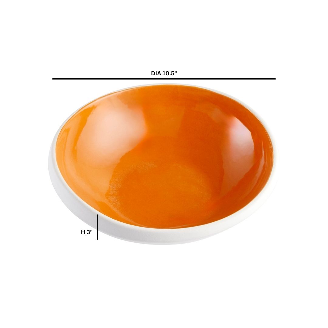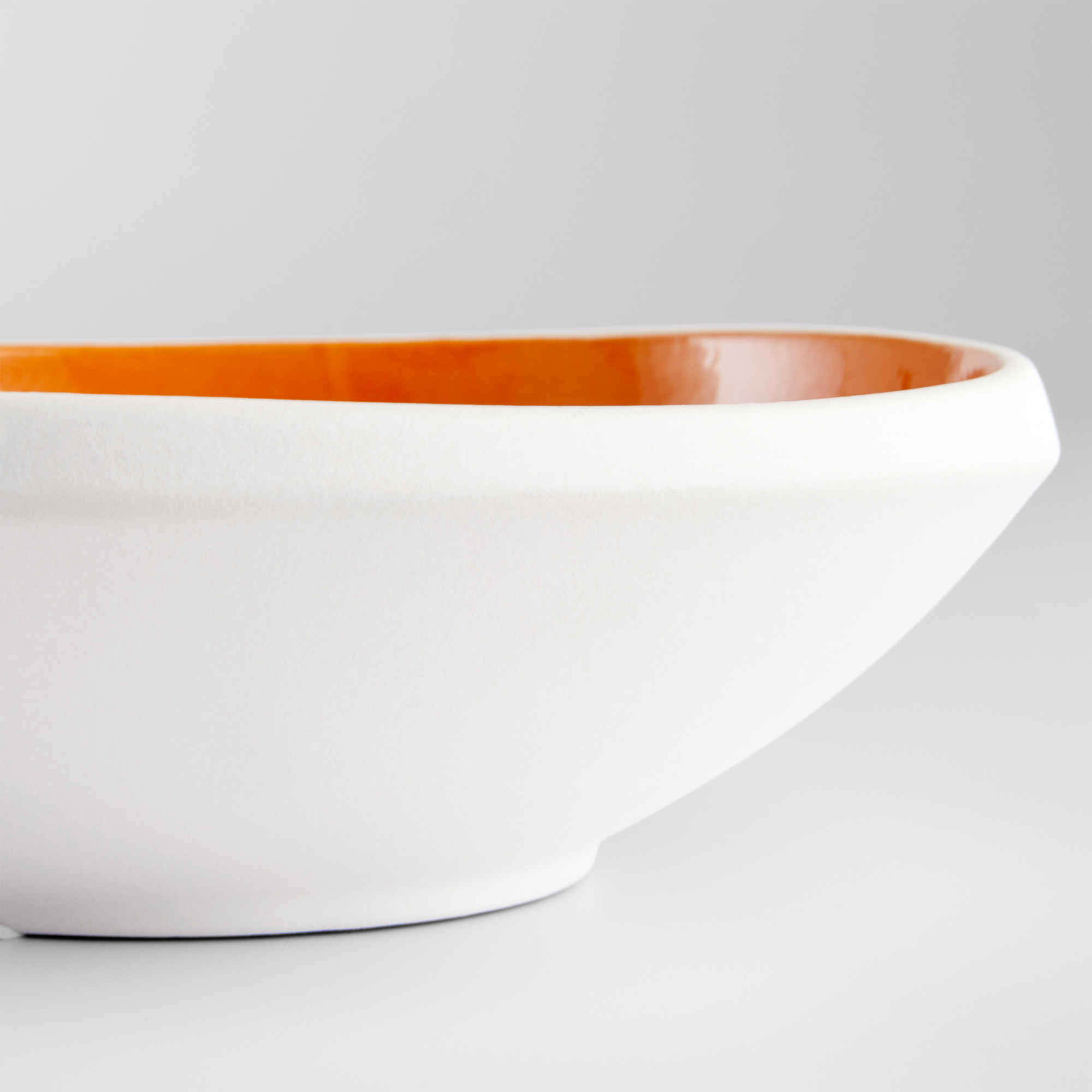 - Low Nesting Bowl | Textured Matte White Exterior | Orange Glazed Interior | Round With Asymmetrical Rim