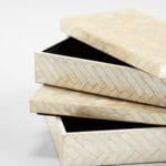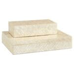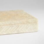 The Triton collection features the centuries-old, enduring beauty of the capiz shell. Harvested from sea mollusks native to Southeast Asia, the capiz shells are delicately fixed to a lidded box. Natural tones in the capiz shell add a subtle iridescence. The Triton trays are available in two sizes and colorways.