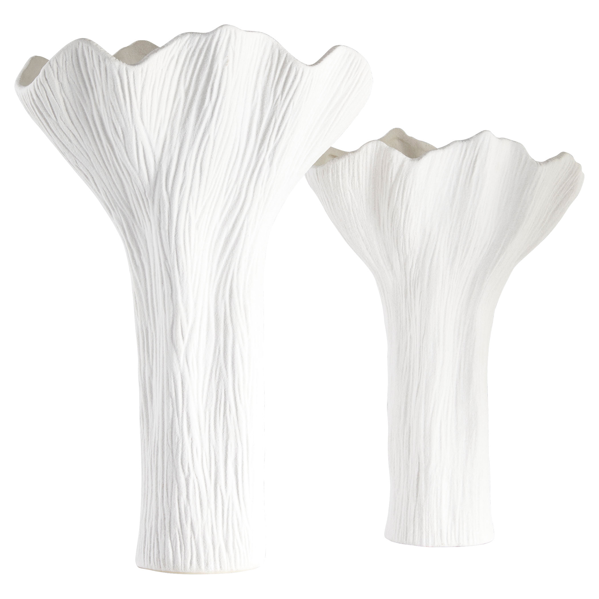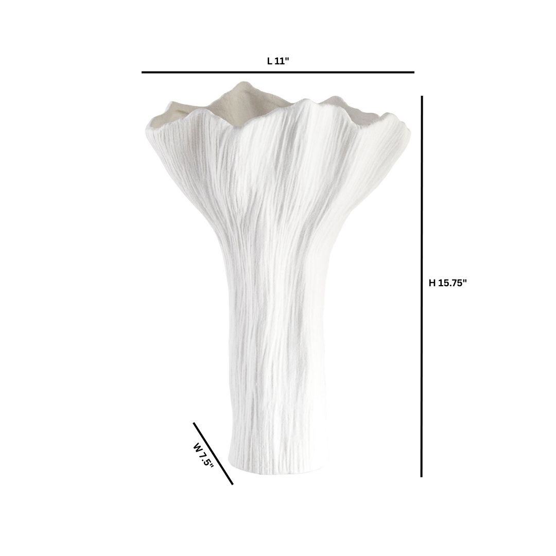 A celebration of nature’s beauty captured in elegant simplicity, the Tulip collection of ceramic vases showcases an organic floral shape that evokes the graceful curves of a tulip in full bloom. These vases are crafted in molds and feature a white bisque finish that lends them a raw texture and adds depth and character by providing a tactile experience that invites touch. Indulge in the enduring beauty of organic shapes and raw textures of the Tulip collection, where each vase tells a story of nature’s inspiration. Available in two sizes.