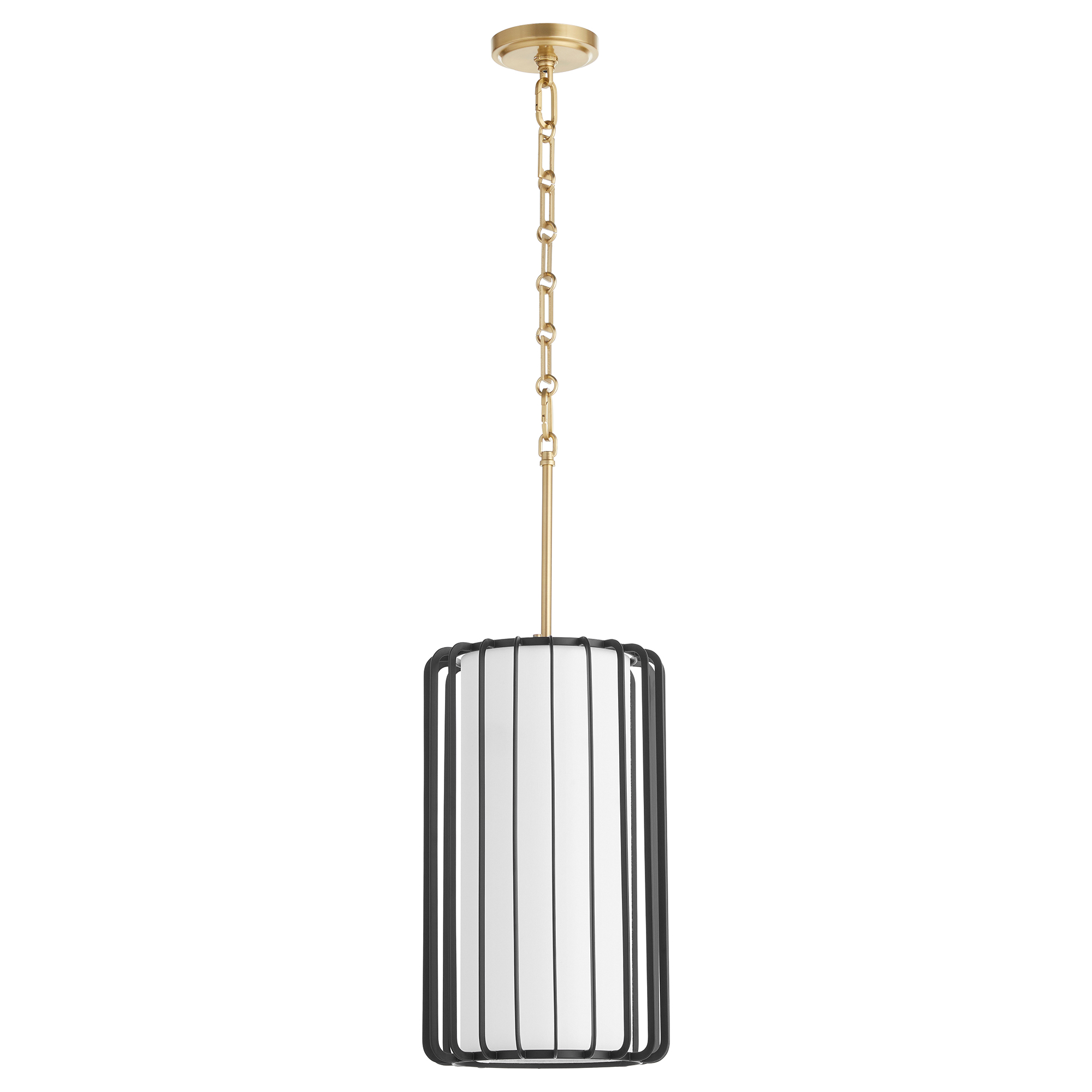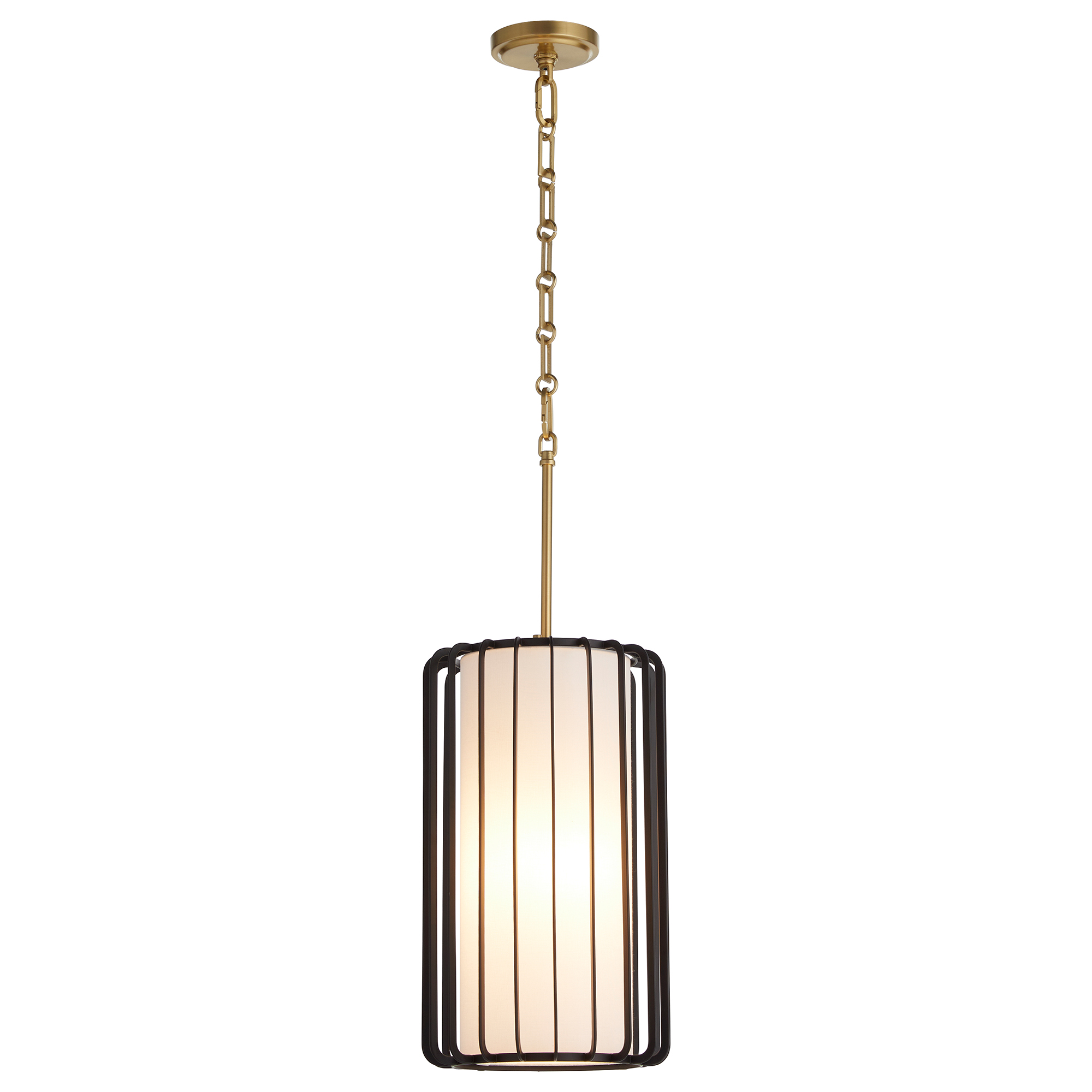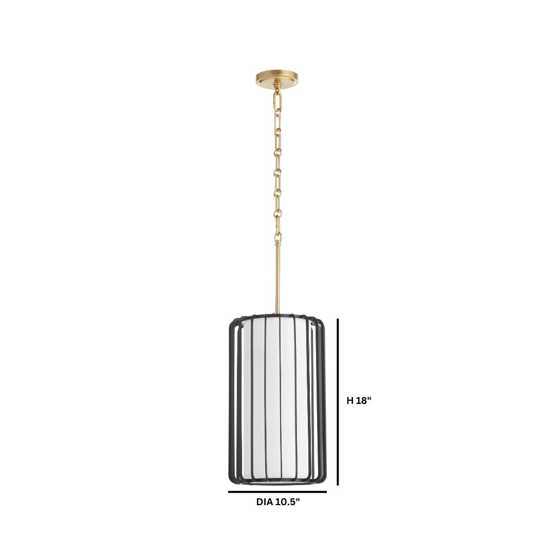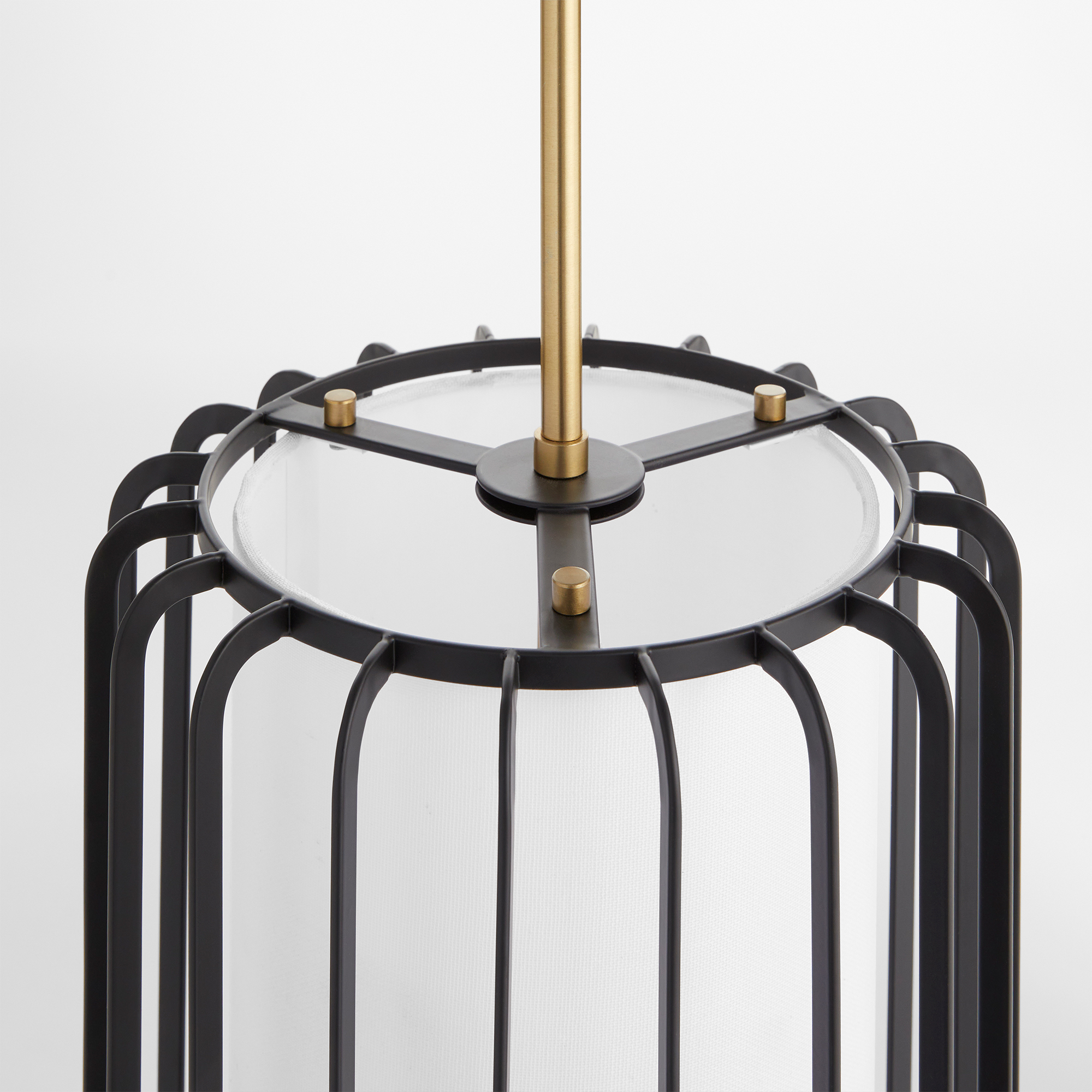 The shades in the Tuxedo lighting collection feature a unique design, with fans that gracefully curve into the frame, adding dimensionality and visual interest. A decorative brass-finished chain suspends the fixture and contrasts the black frame. Wrapped in a white fabric drum shade, the soft glow of light is beautifully diffused, creating a warm and inviting ambiance. Attention to detail is evident in every aspect of the collection’s design, from the little brass pin that securely holds in the top diffuser to the overall craftsmanship that ensures a flawless finish. Damp-listed for versatility, the Tuxedo Lighting Collection is suitable for a variety of indoor settings. With options of 1, 3, or 4 lights, these fixtures provide ample illumination for any space. The included 8-foot chain and one 12-inch rod offer flexibility in installation, making them adaptable to vaulted and sloped ceilings. Elevate your design with the Tuxedo Lighting Collection and bask in timeless beauty and functionality.