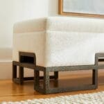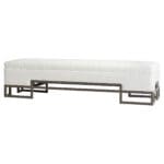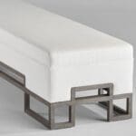Perfectly sized for placement at the foot of a king-size bed, the Vanora bench is ideal for a contemporary bedroom with its Chippendale-style frame. The contrasting weathered black Oak finish and white linen fabric upholstered foam cushion add an extra layer of visual appeal.
