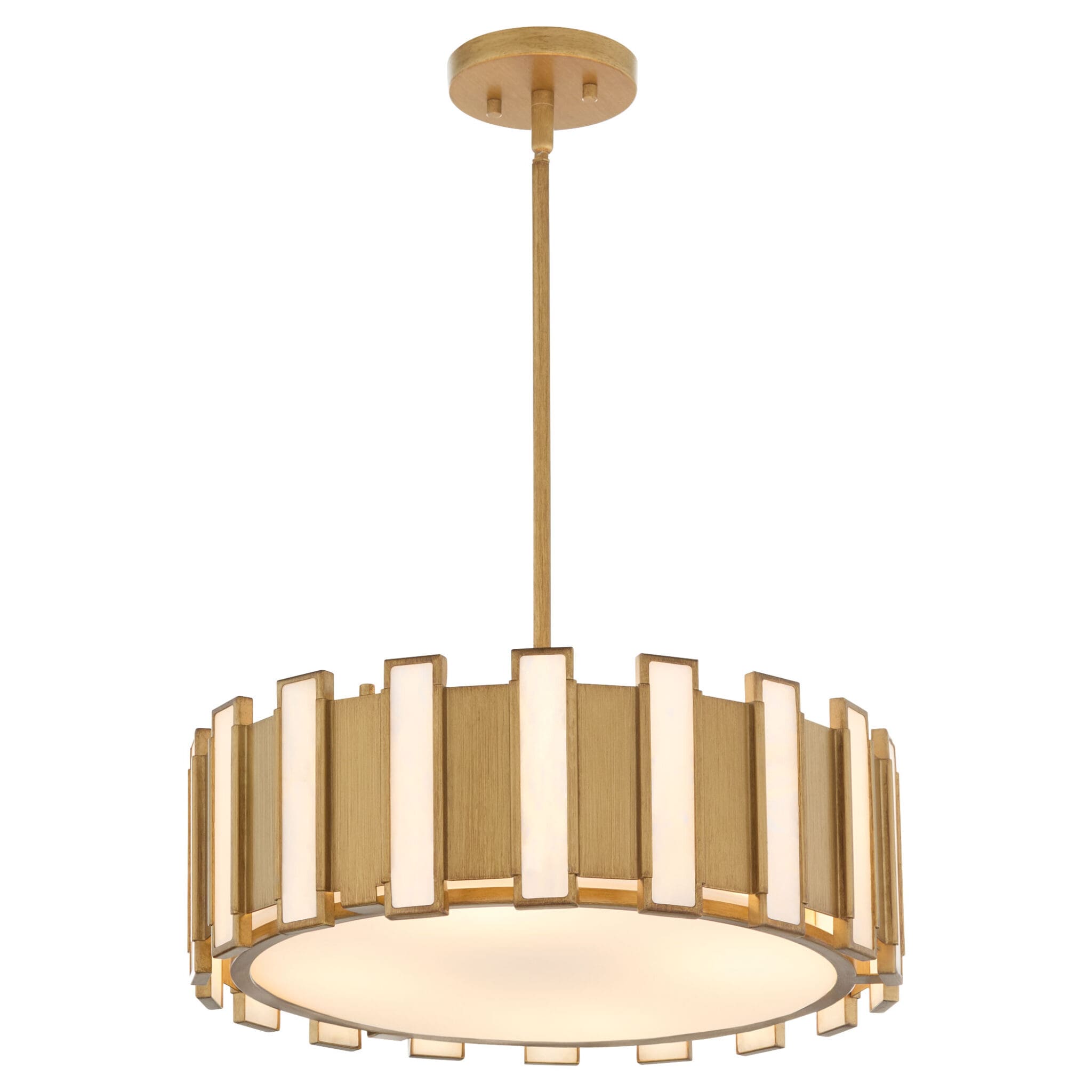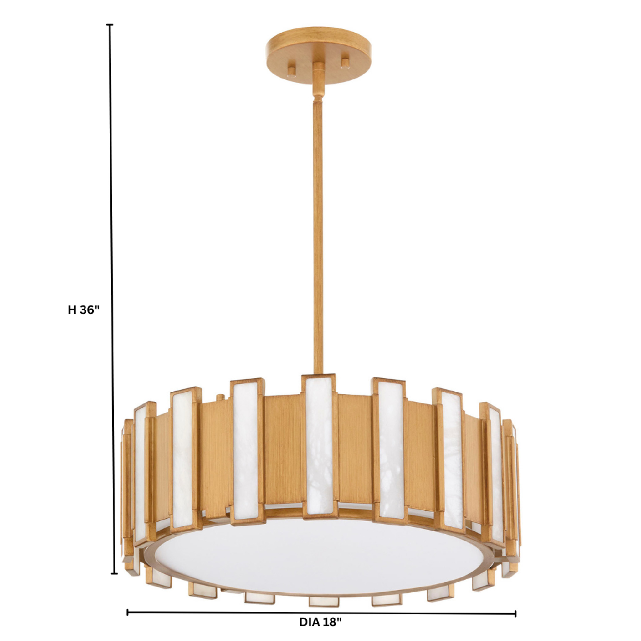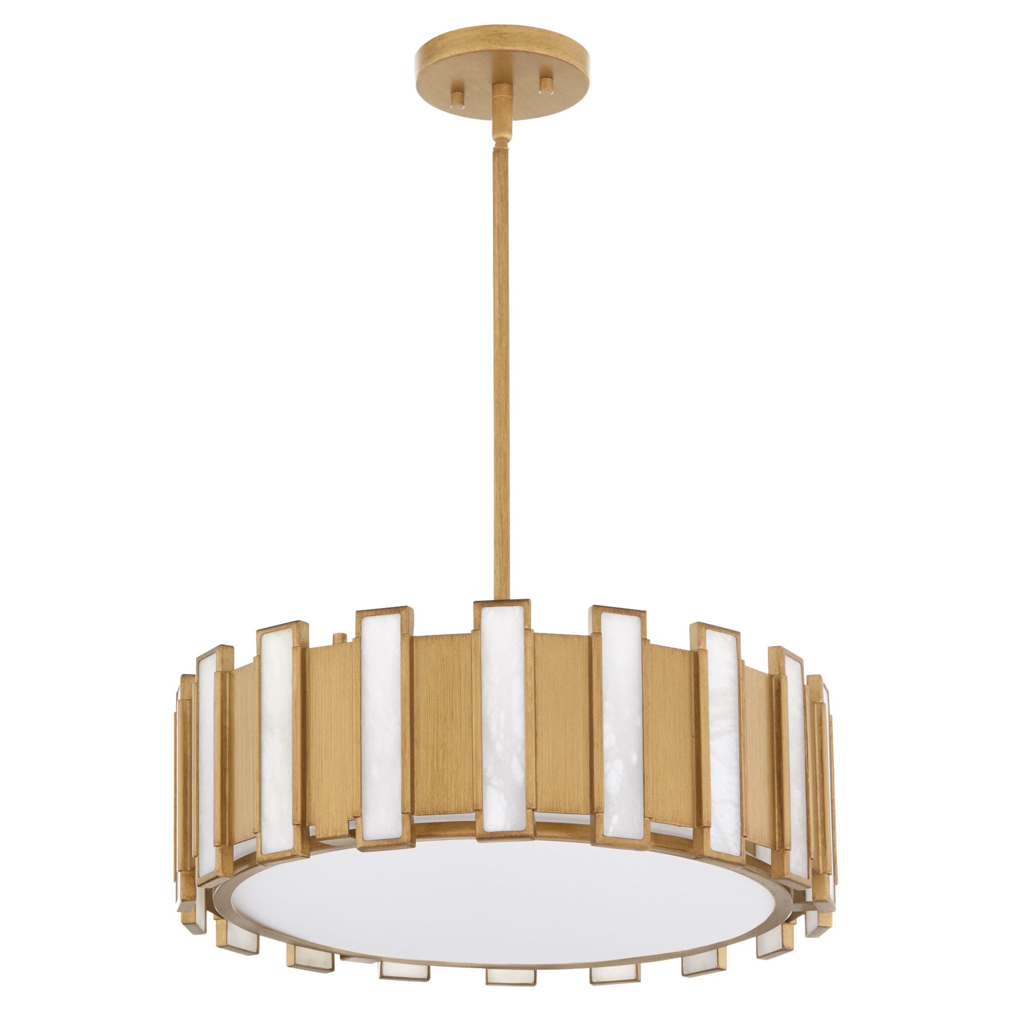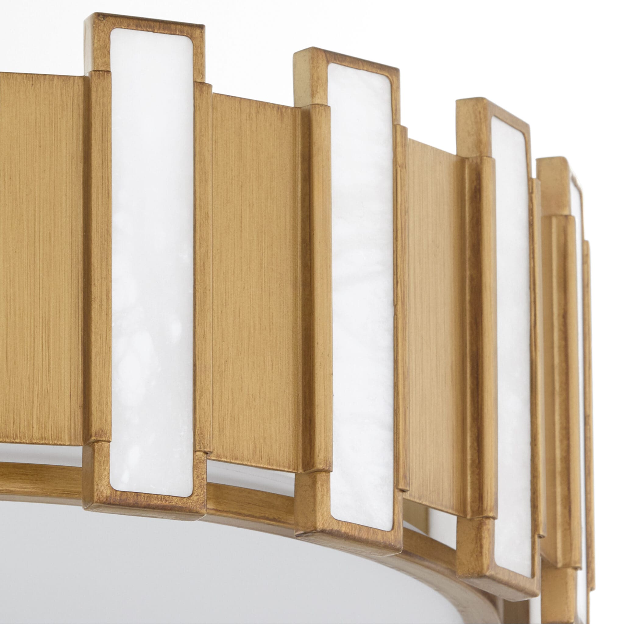 The Volterra collection comprises alternating short, aged brass and tall, framed alabaster glass rectangles that meet around medium base sockets to form a cylindrical shade. Concealed within, the lamps cast a soft glow through a round frosted glass diffuser secured to the light by an aged brass frame. Add mid-century, empire style with the Volterra collection of designer lighting to your next interior design project.