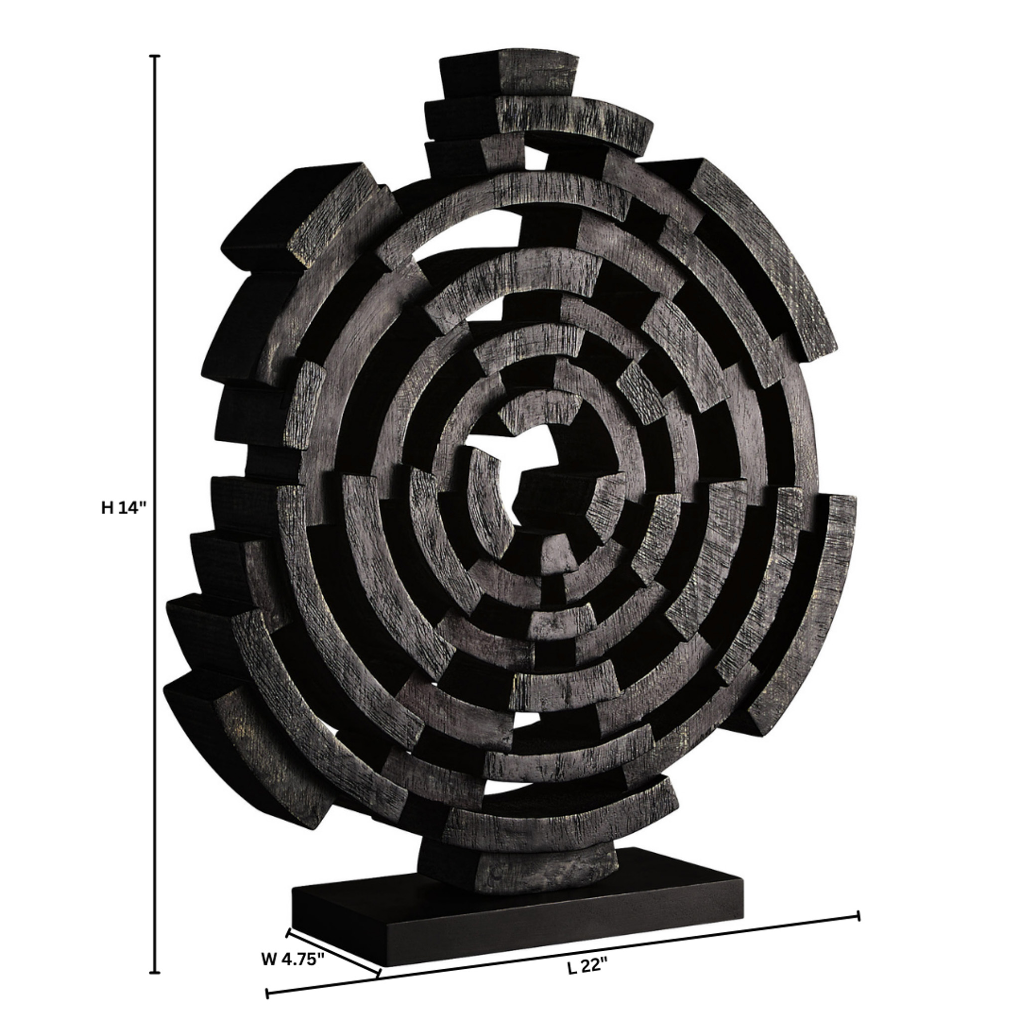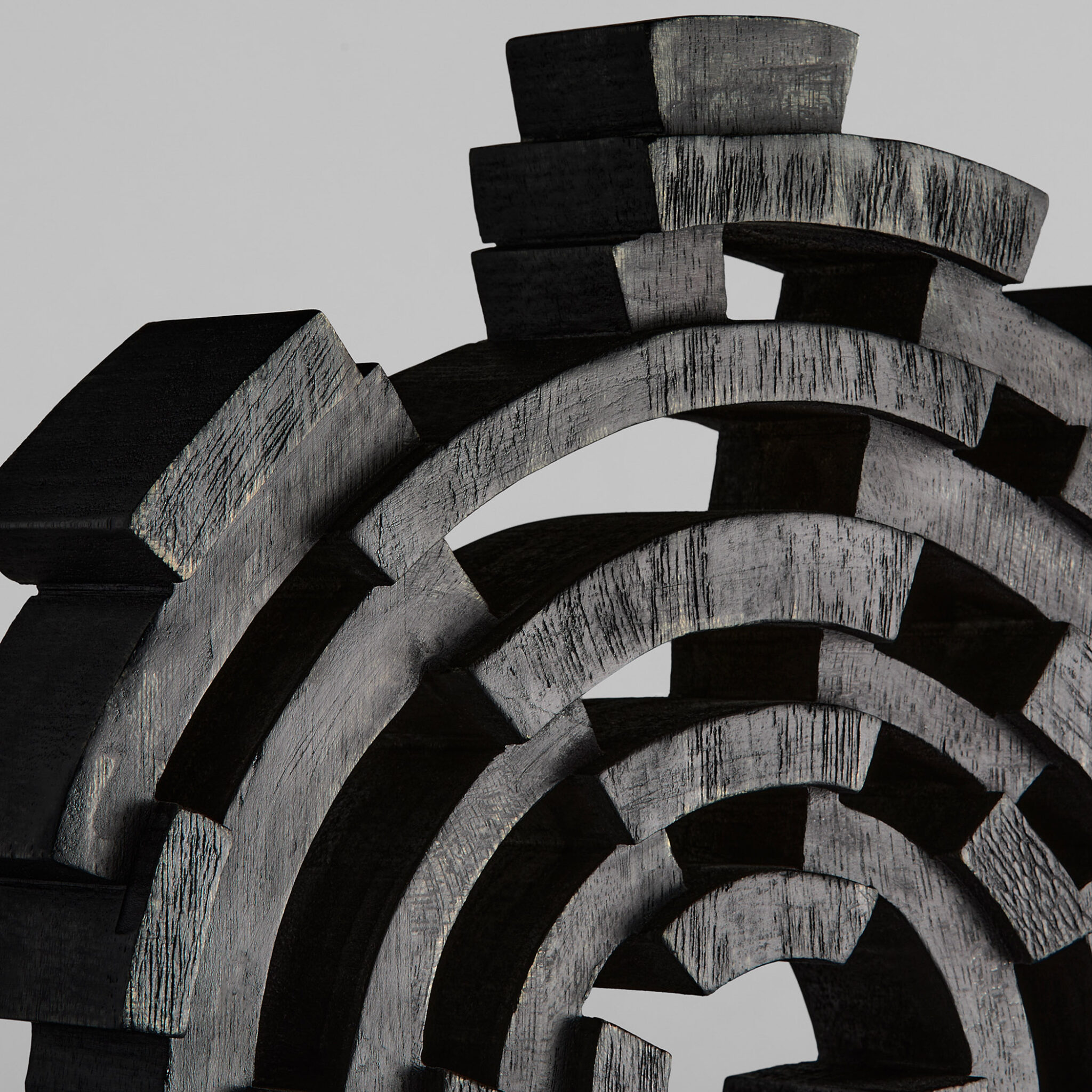 The Vortex Sculpture is an abstract, hand-carved masterpiece crafted from Ardu wood in a rich dark walnut finish. Its unique design and intricate detailing make it a striking accent piece.