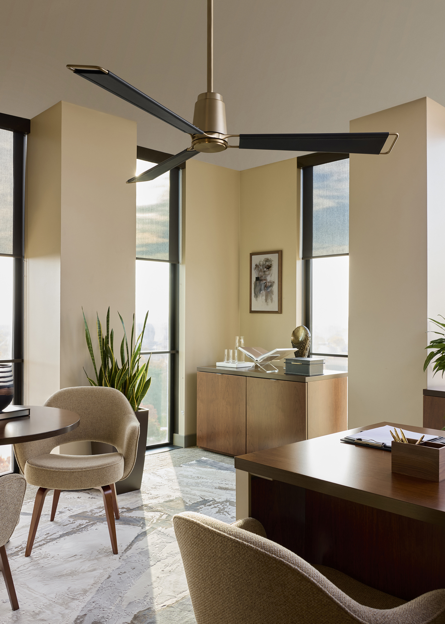 Zephyr 60″ Ceiling Fan | Aged Brass – Black Leather
