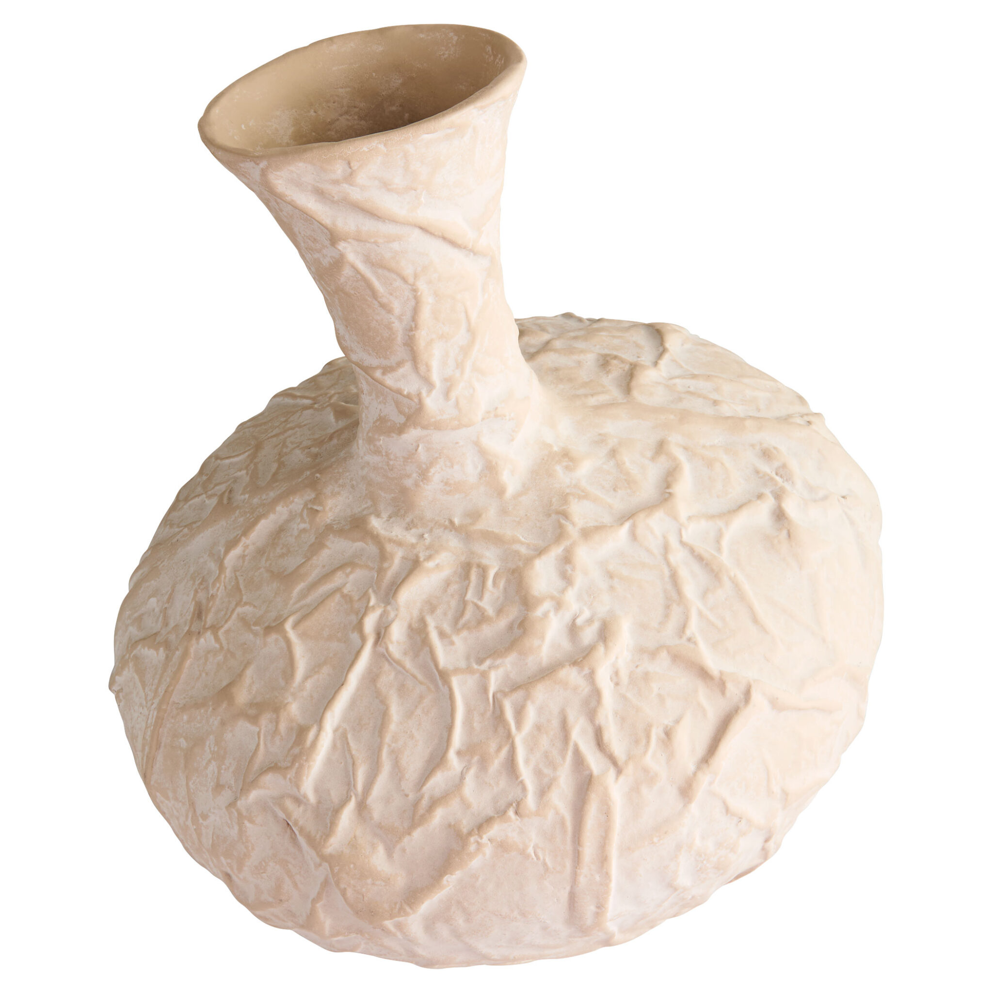 Inspired by the art of crumpling materials to create shapes and textures, artisans apply antiquing details by hand to the raised sections of the Zimurtu vases, creating deep contrast. Their large scale commands attention whether displayed individually or clustered in groups, making them perfect statement pieces. Made from Ecomix, a biodegradable, eco-friendly material.