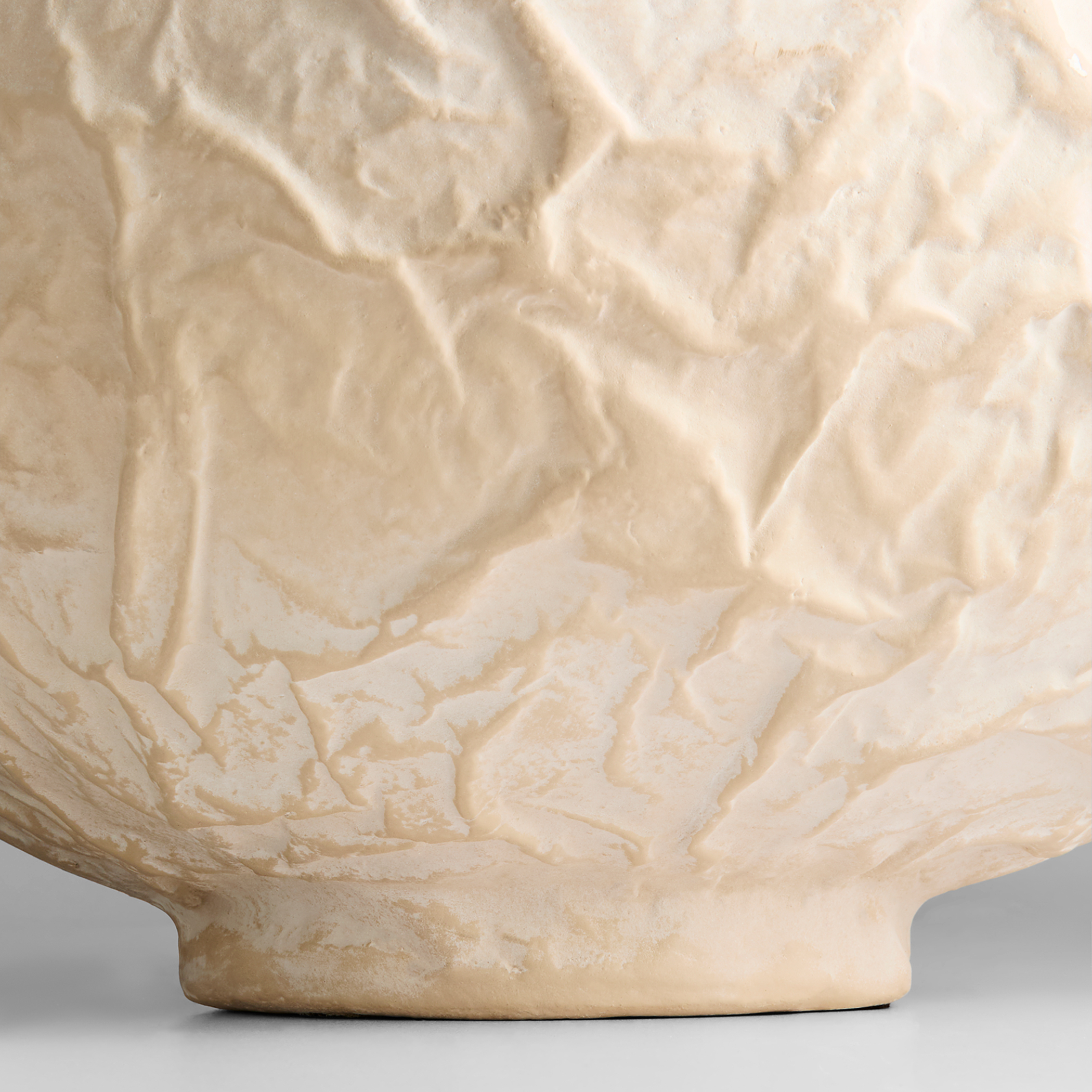 Inspired by the art of crumpling materials to create shapes and textures, artisans apply antiquing details by hand to the raised sections of the Zimurtu vases, creating deep contrast. Their large scale commands attention whether displayed individually or clustered in groups, making them perfect statement pieces. Made from Ecomix, a biodegradable, eco-friendly material.