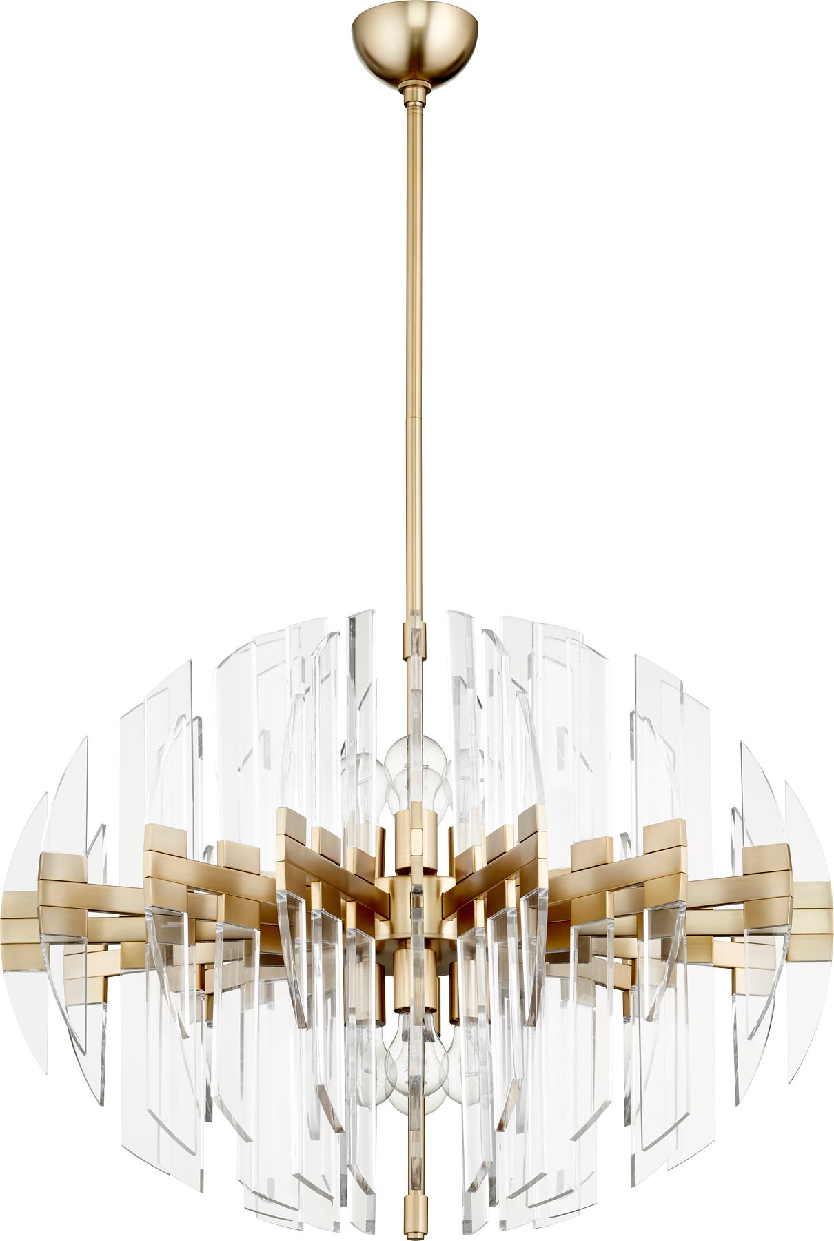The sleek and futuristic Zion Pendant. Available in three size and three finish options (Aged Brass, Satin Nickel, & Polished Nickel), this fixture is ultra modern but thanks to its transparent design it also serves as the perfect transitional accent to any type of style.? This acyrlic luminary is the perfect complement to any Modern, Minimal, or Mid-Century Modern entry or dining room application.